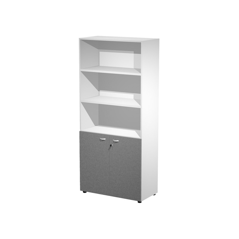 Armadi con ante dotate di serratura. Top sp. 18mm, struttura spessore 18mm, ripiani riposizionabili spessore 25mm. Rifiniti posteriormente nello stesso colore della struttura in modo da poter essere riutilizzate come pareti divisorie. Piedini regolabili in altezza. Ripiani riposizionabilli. Profondità utile dei ripiani 42,5cm. Ante color antracite. Mobile alto con ante basse battenti con serratura 1 ripiano fisso+3 riposizionabili L90 x P45 x H200cm