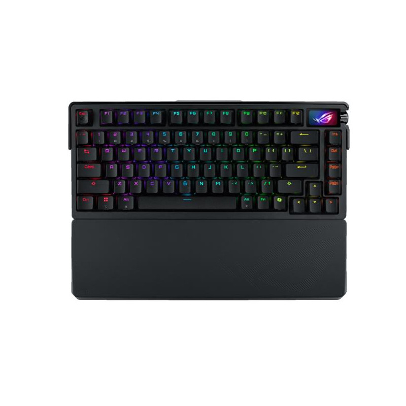 ROG Azoth Extreme è una tastiera gaming personalizzabile al 75% con telaio in lega di alluminio e struttura in metallo. È dotata di una frequenza di trasmissione di 8000 Hz con ROG Polling Rate Booster e di oltre 1600 ore di durata della batteria in modalità wireless ROG SpeedNova a 2,4 GHz. Il touchscreen OLED aggiornato e la manopola a tre vie consentono di monitorare il sistema e di effettuare regolazioni rapide. La piastra di posizionamento in fibra di carbonio garantisce una digitazione nitida, mentre tre strati di smorzamento assorbono le vibrazioni. Un supporto a guarnizione regolabile con interruttore a paletta offre due preferenze di digitazione.